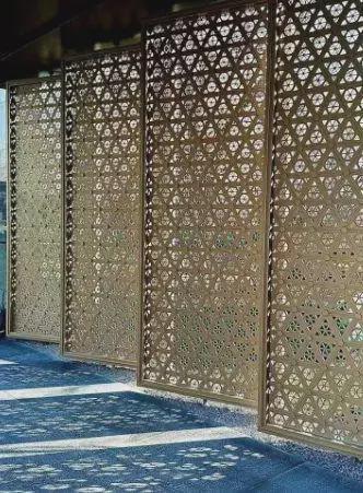 故宫太和殿窗棂采用的三交六椀菱花,丰和叁號院把它全方位运用到了包括两个大门、园林书院屏风等多场景中,彰显东方美学。