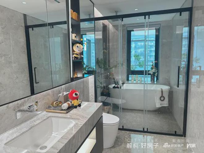 卫生间是家里最私密的存在,因此,卫生间更注重的是居住者的使用便利度与舒适度,逐渐成为豪宅设计比拼的重要战场,中海丰和叁號院在卫浴空间上花了很多心思,宽敞的石材台面、整面定制柜体、临窗浴缸……提升使用时的幸福感。