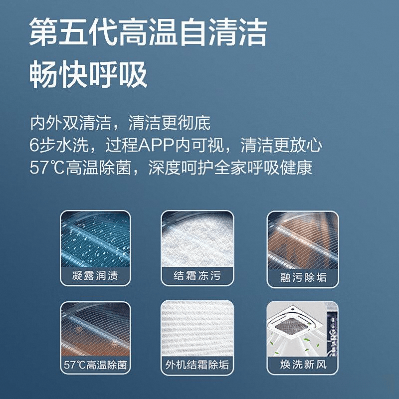 三重净化科技:通过先进的负氧离子和抑菌翅片设计,确保室内空气质量大幅提升。独特的高温自清洁功能,能有效去除灰尘与细菌,让家人能够享受更加健康的生活环境。无论是在夏季的酷热还是冬季的寒冷,这种创新技术都在默默守护你的家庭健康,提供持久清新的空气。